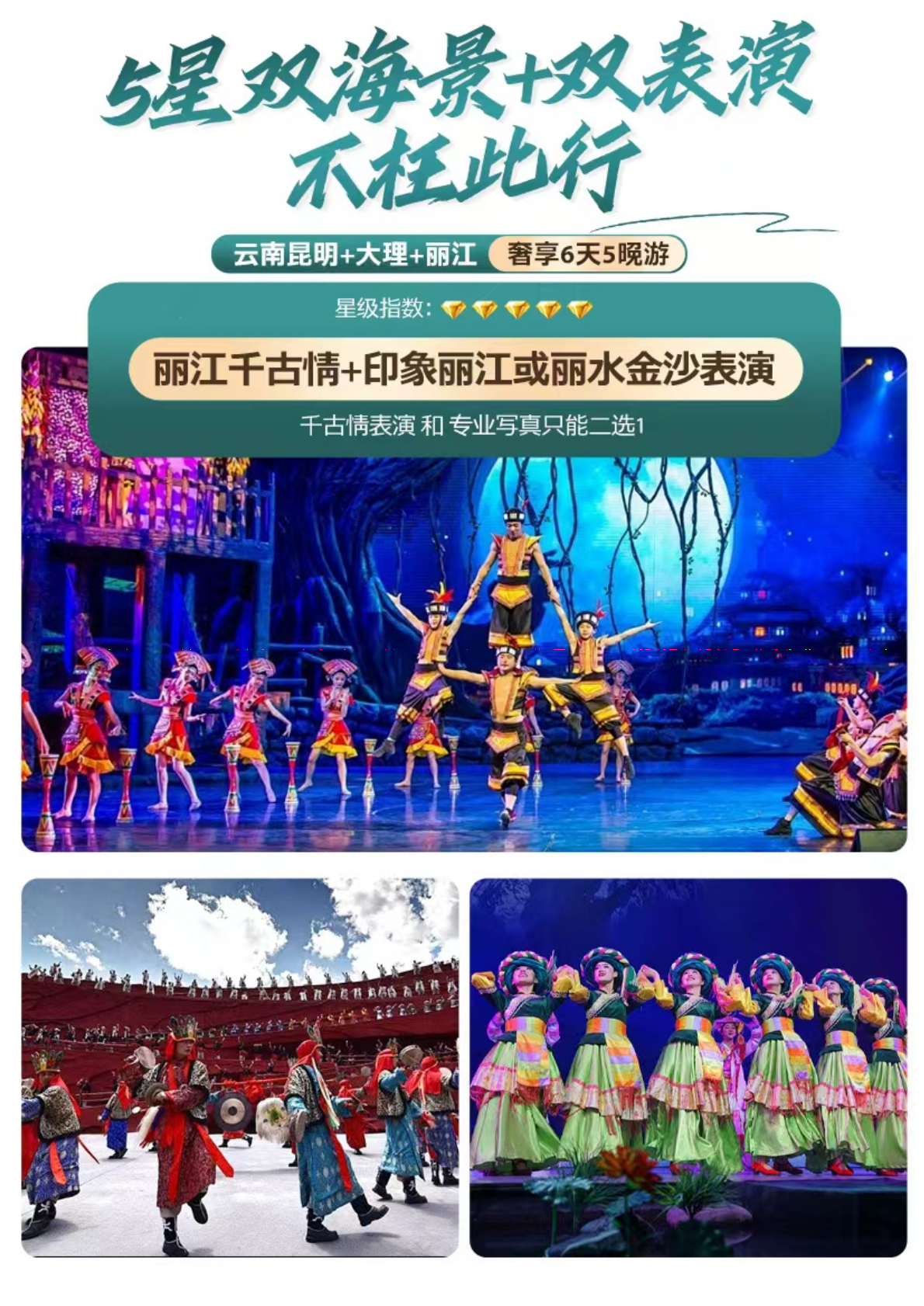 昆明 大理 丽江一站式打卡,5钻酒店,丽江动车返昆明