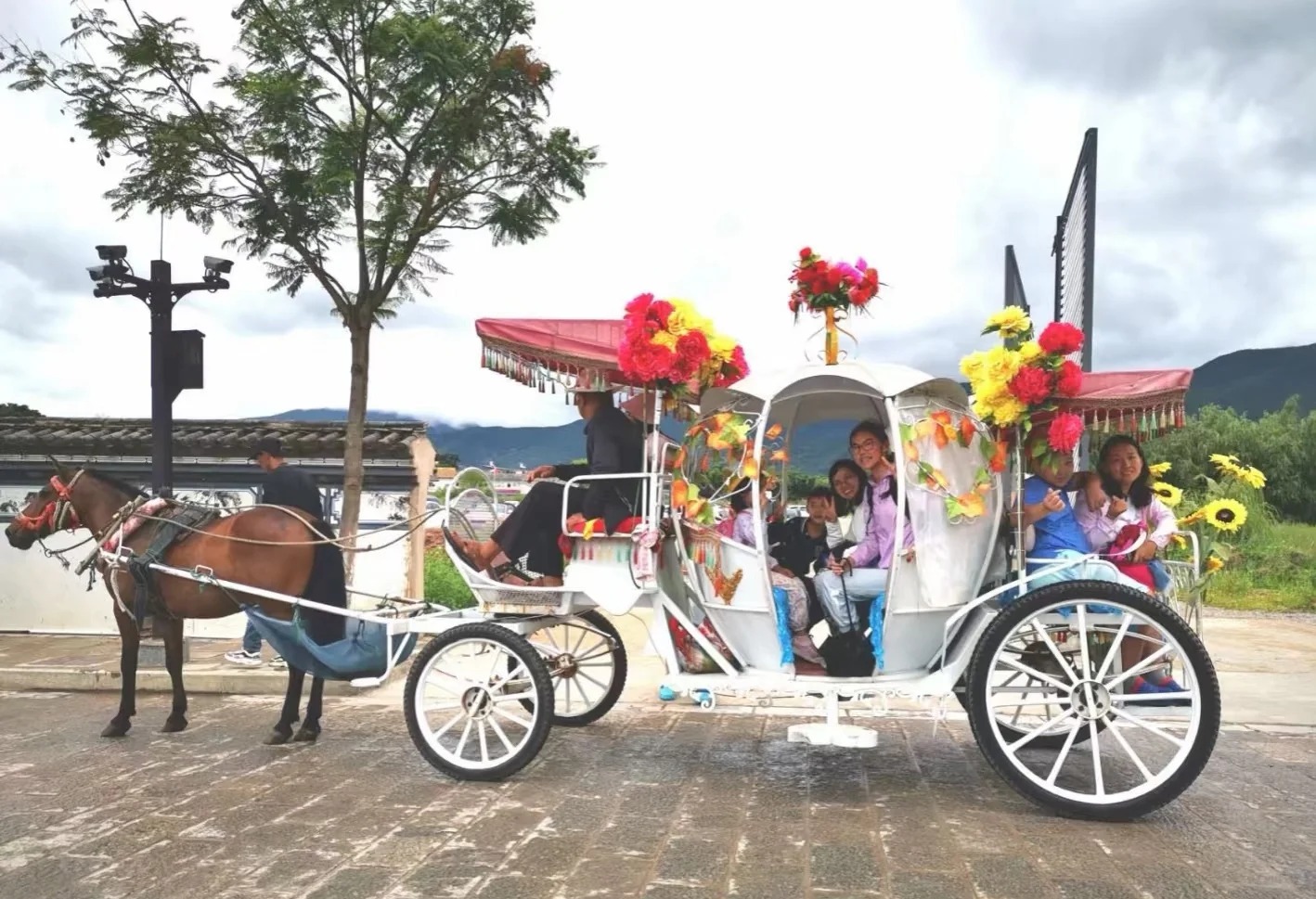 体验喜洲独家网红小马车 听着清脆的马蹄声,如同奏响了一曲悠扬的乐章。车轮滚动,带起微风,吹拂着脸庞,那是来自岁月的温柔抚摸。