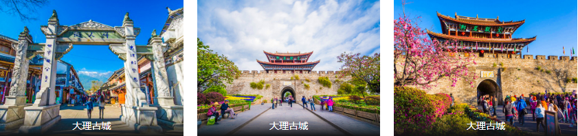 酒店享用完早餐后,乘车前往【大理古城】位于云南省西部,又名叶榆城、紫城,建于明洪武十五年(公元1382年),古城外有条护城河,古城四周有城墙,东、西、南、北各设一门,均有城楼,四角还有角楼。漫步【洋人街】,体会独特的异国风情。