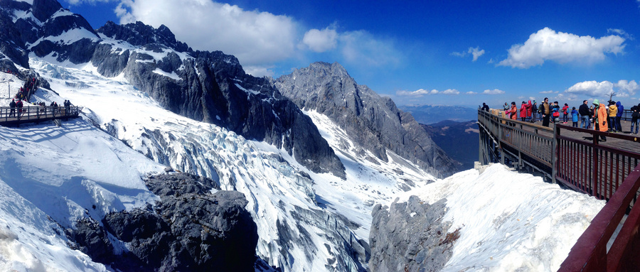乘坐雪山专线环保车至【冰川大索道】乘坐点,抵达【冰川公园】。乘大索道至海拔4506米观景区,客人可以根据自身体力情况登级至4680米,一览众山小。