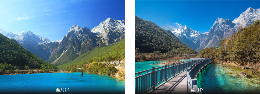 之后前往 “仙人遗田”之称的小九寨沟【蓝月谷】(含电瓶车),其前身为人们所熟知的 “白水河”,蓝月谷又名白水河,在晴天时,水的颜色是蓝色的,而且山谷呈月牙形,远看就象一轮蓝色的月亮镶嵌在玉龙雪山脚下,所以名叫蓝月谷。