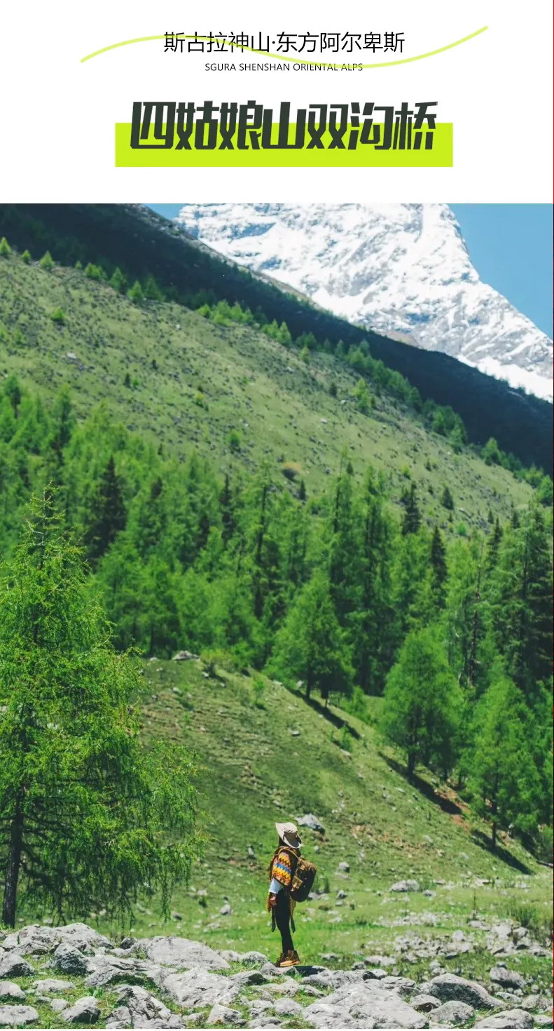 12:30-13:50:经过【猫鼻梁观景台】,进行拍照打卡,在四姑娘山双桥沟景区外午餐后,进入双桥沟景区;