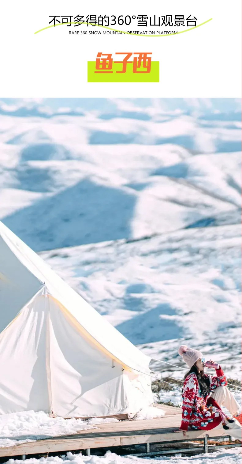 16:00-18:30:随后前往【鱼子西】(门票已含,中转车60元/人自理)天气好时能观看到日照金山,海拔约4200m,游玩时间30分钟)可360度遥望藏区四大神山之一藏区“第二香巴拉”的雅拉神山全貌,和木雅嘎大雪山山系全貌,为贡嘎西坡地区难得的观景摄影点;