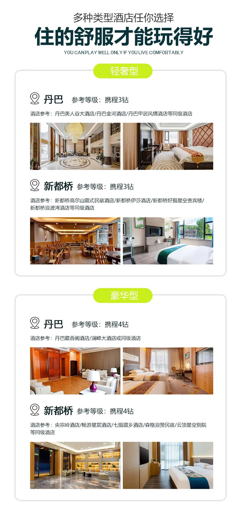 【关于大床】因藏区酒店大床房稀缺,行程住宿默认为标间;有大床需求的游客请提前告知客服,我司尽量优先安排,若无大床则安排标间;