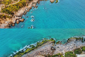 水清澈湛蓝,海底海洋生物丰富。