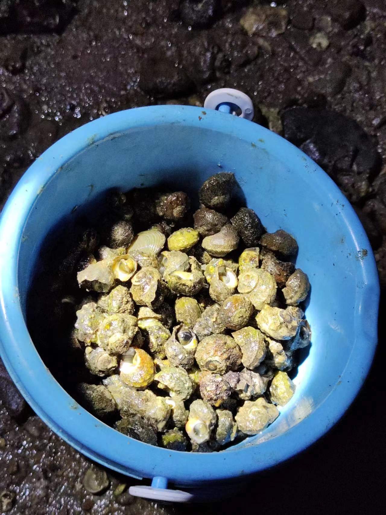 这个由于未经开发,海货非常多,在礁石边就很容易弄到一些石鳖、将军帽、海虹、生蚝、牛角螺、猫眼螺、八爪螺、佛手、沙白、花甲、青口、猪仔螺、苦螺、螃蟹、藤壶等等。
