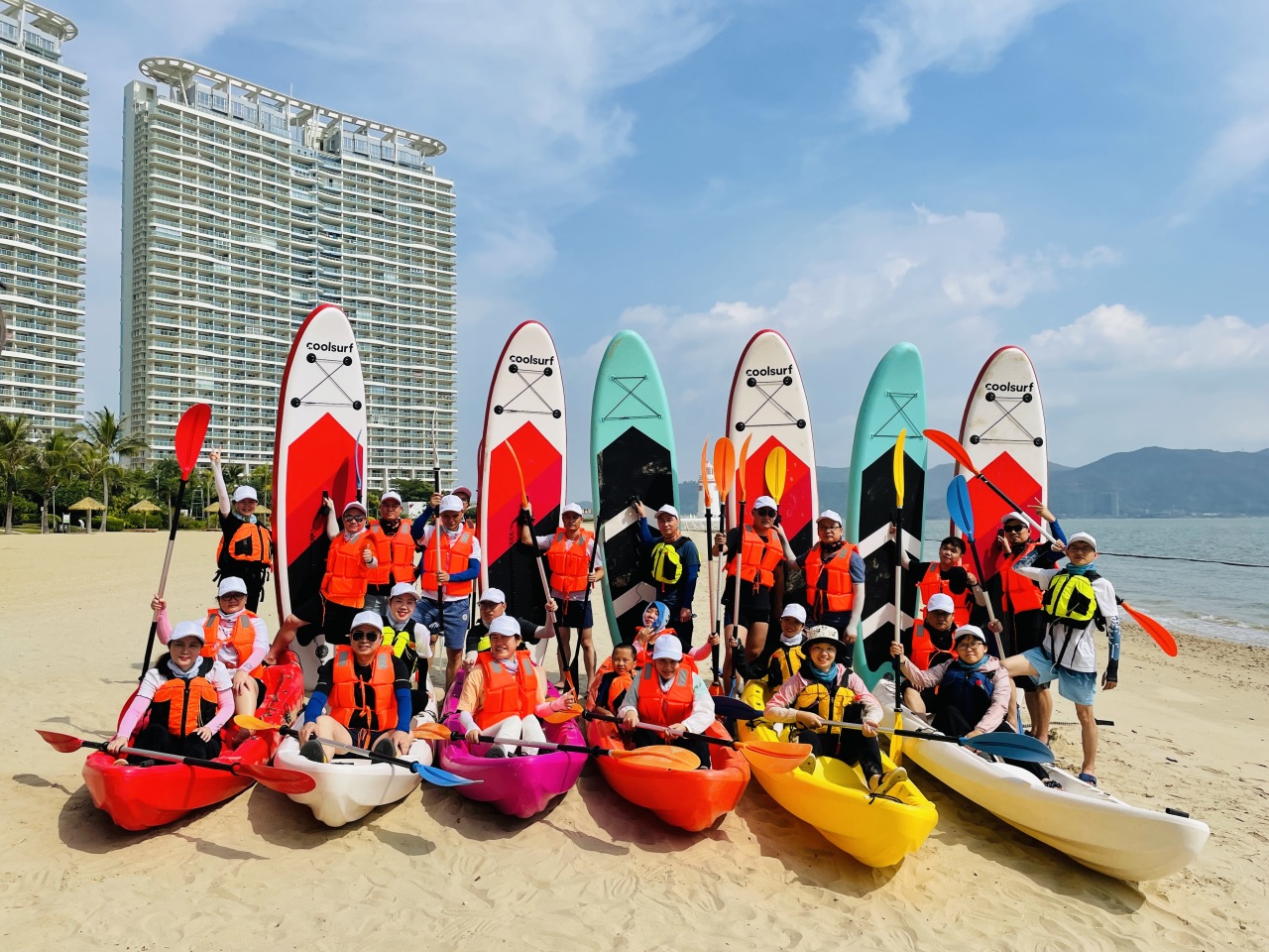 09:00 前往沙滩游玩浆板,开始【皮划艇】,领队带大家进行划艇技巧及注意事项讲解,海上激浪桨板进行时,水上作战high起来,或者在沙滩开启【沙滩排球】活动(赠送活动)。