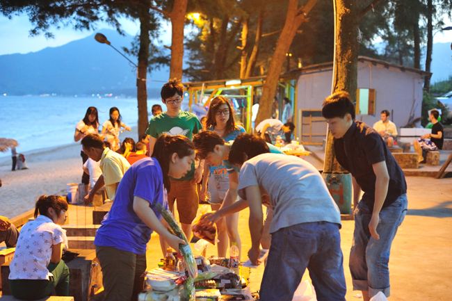 来到沙滩怎么能少了烧烤、啤酒呢。