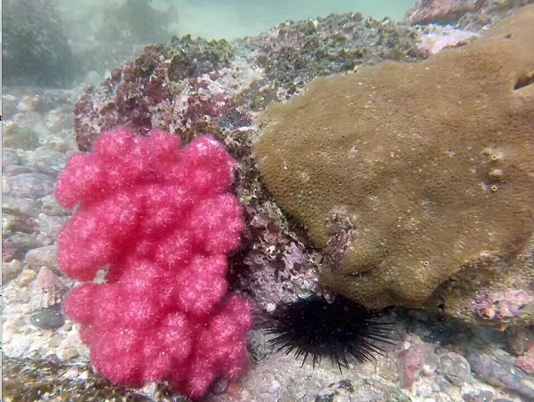 岛周海域平坦,有许多的热带鱼和海胆