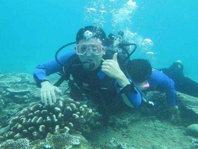 4、小星山深潜220元/人:往返外海快艇+全套进口潜水工具使用(呼吸咬嘴,氧气,潜水服,面镜)+潜水保险+专业教练指导并跟陪下水,全程2小时,下水约20-30分钟,潜水深度根据个人身体情况潜至3-10米;赠送海底拍照+视频(非必消)。