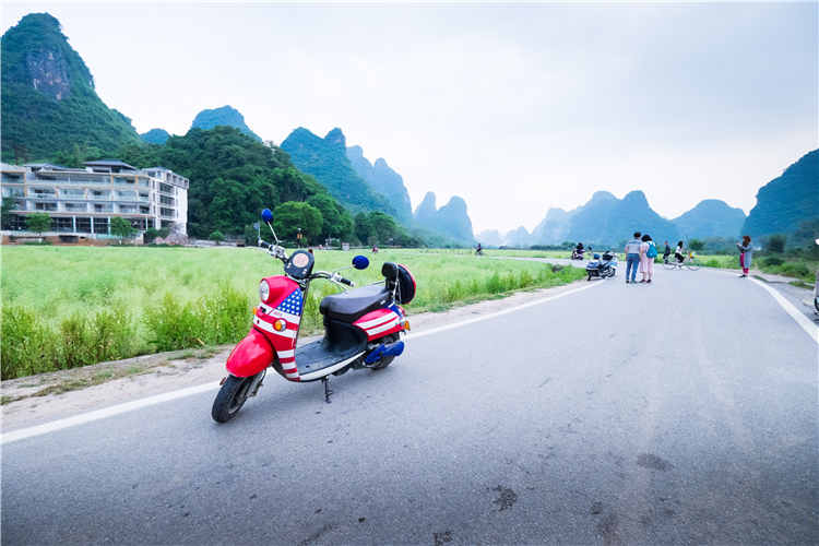 统一到附近租车店挑选适合自己的单车(租单车费用已含,如骑电动车,需补差价),由领队带着,开启【漫游阳朔】,全程大约15KM,途经遇龙河公园、十里画廊,尽览阳朔田园风光。
