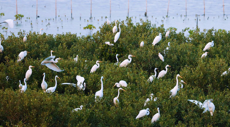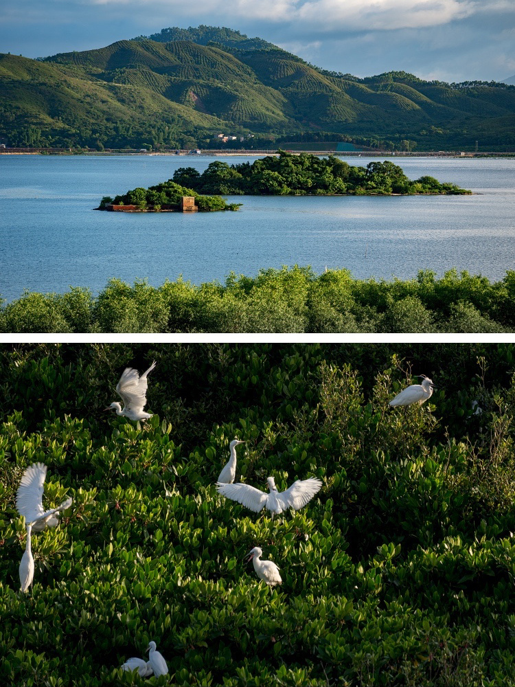盐州岛的考洲洋湿地公园,种植了大片红树林,是候鸟越冬场和迁徙中转站