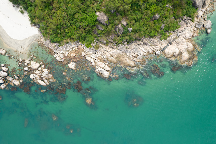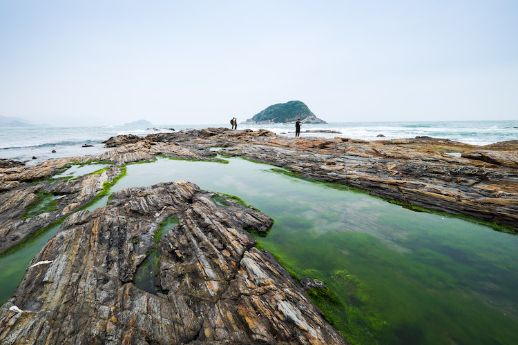 这里有一些延伸至海里的黑色礁石,充满神秘色彩,我们可以在上面感受礁石纹路所来带的视觉享受。