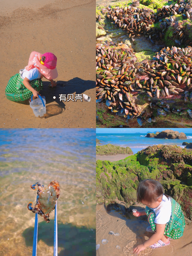 孩子最爱赶海之地,挖贝壳、捉螃蟹、捡海胆、海参,挖青口等。