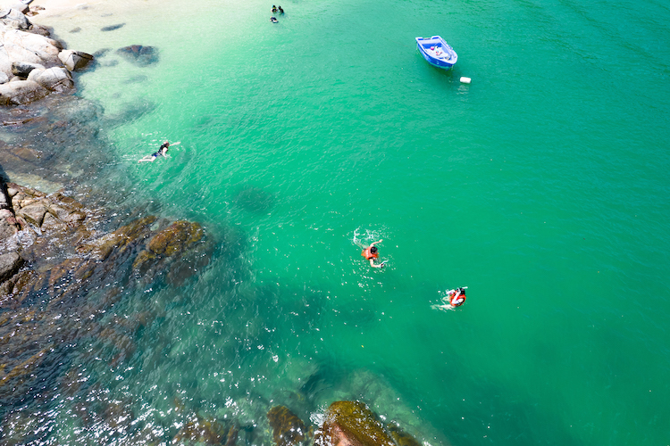 换上泳衣,戴上浮潜装备,就可以下海浮潜啦↓