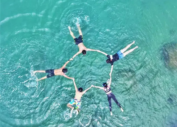浮潜:为队员免费提供浮潜装备使用(呼吸管+咬嘴+潜镜+防刮鞋+救生衣),不使用不退费