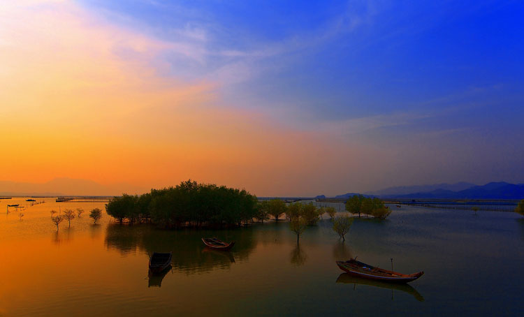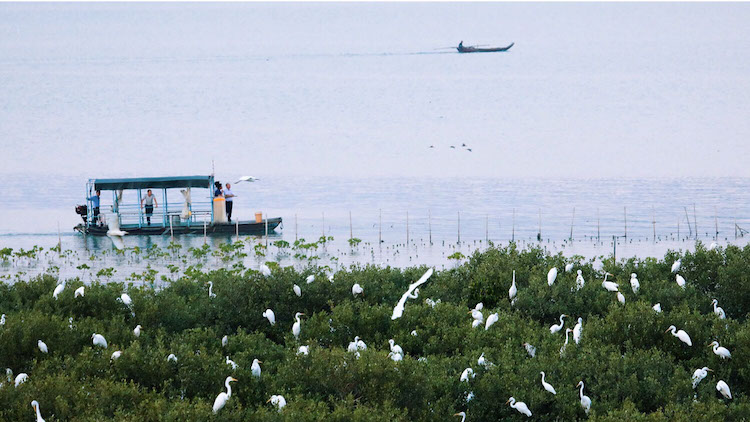 15:30 前往白沙村红树林湿地公园,可以在码头坐当地村民的渔船出海放网捕鱼(自费),可滩涂上捉螃蟹、可到白鹭亭观看白鹭归林、拍摄红树林里的白鹭,以及守候极美晚霞日落