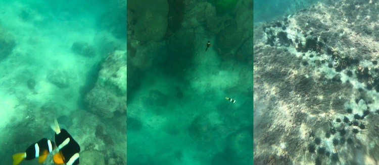 2.浮潜需靠近礁石附近才比较多海洋生物,如海胆、小丑鱼、珊瑚礁等。