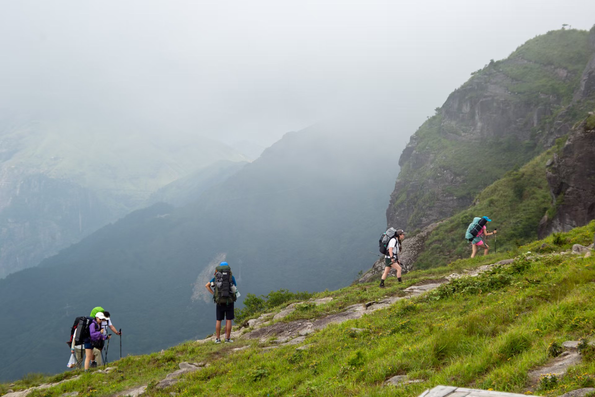 09:30 开始出发;沿途经过陡坡树林,经铁蹄峰往金顶进发。中午山间午餐路餐(自带干粮);