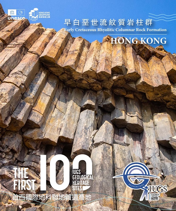 香港地质公园早白垩世流纹质岩柱群于2022年10月入选为首百个国际地科联地质遗产地,成为了科学界公认世界上最具地质科学价值的100个地点之一