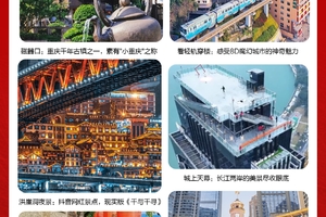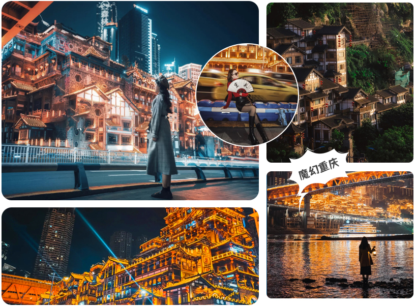 走进【洪崖洞夜景】(游览时间不低于30分钟)夜幕降临,华灯初上,依山而建的吊脚楼,从1楼到11楼,层层叠叠,错落有致,仿佛悬挂在峭壁之上。每一层楼都亮着暖黄色的灯光,将整个建筑勾勒得金碧辉煌,如同童话世界中的城堡。