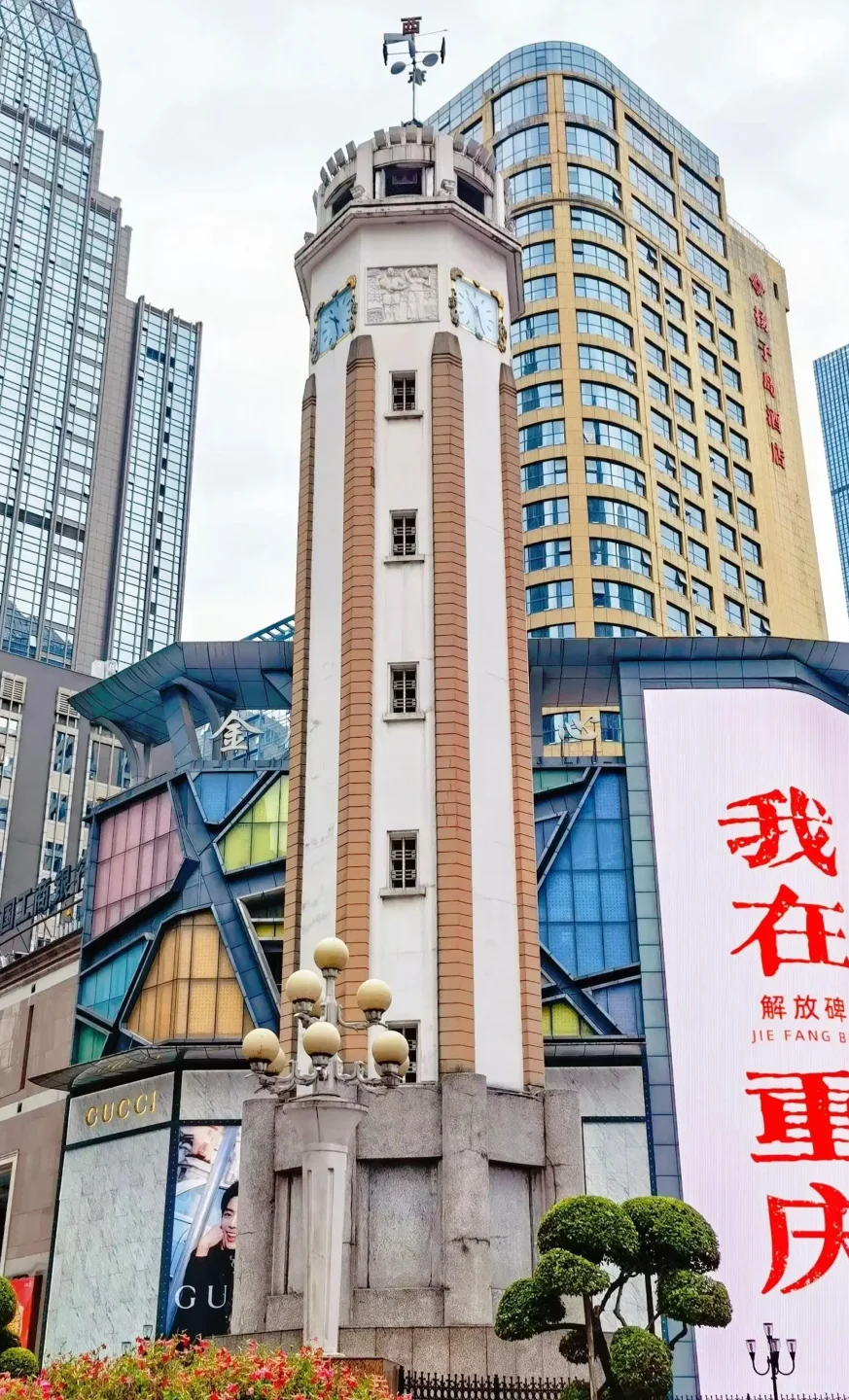 游览“成渝十大文旅新地标”【解放碑】(游览时间不低于30分钟)1947年8月落成,是抗战胜利的精神象征,是中国唯一一座纪念中华民族抗日战争胜利的纪念碑,位于重庆市渝中区解放碑商业步行街中心地带。