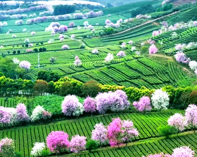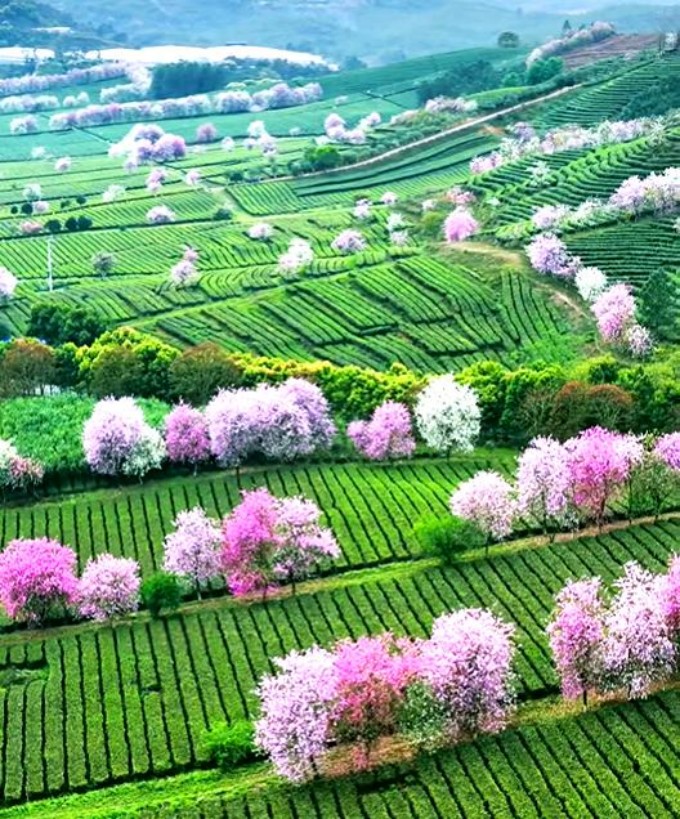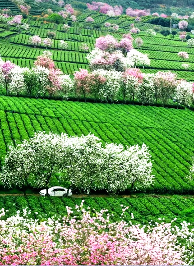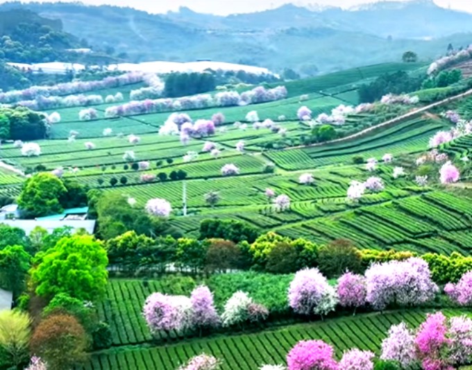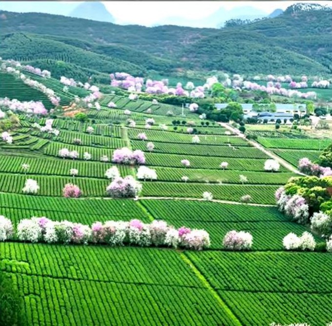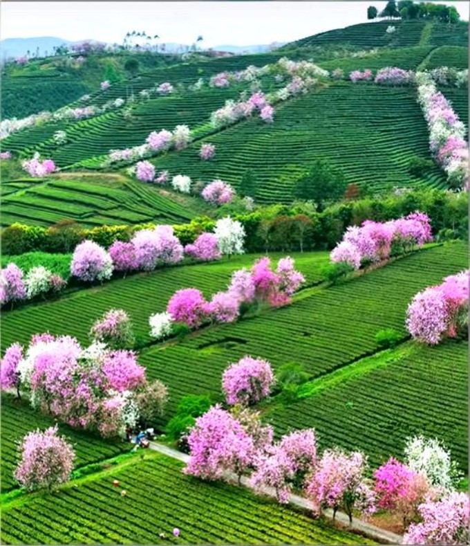 一场茶园紫荆花的浪漫邂逅,悄然上演