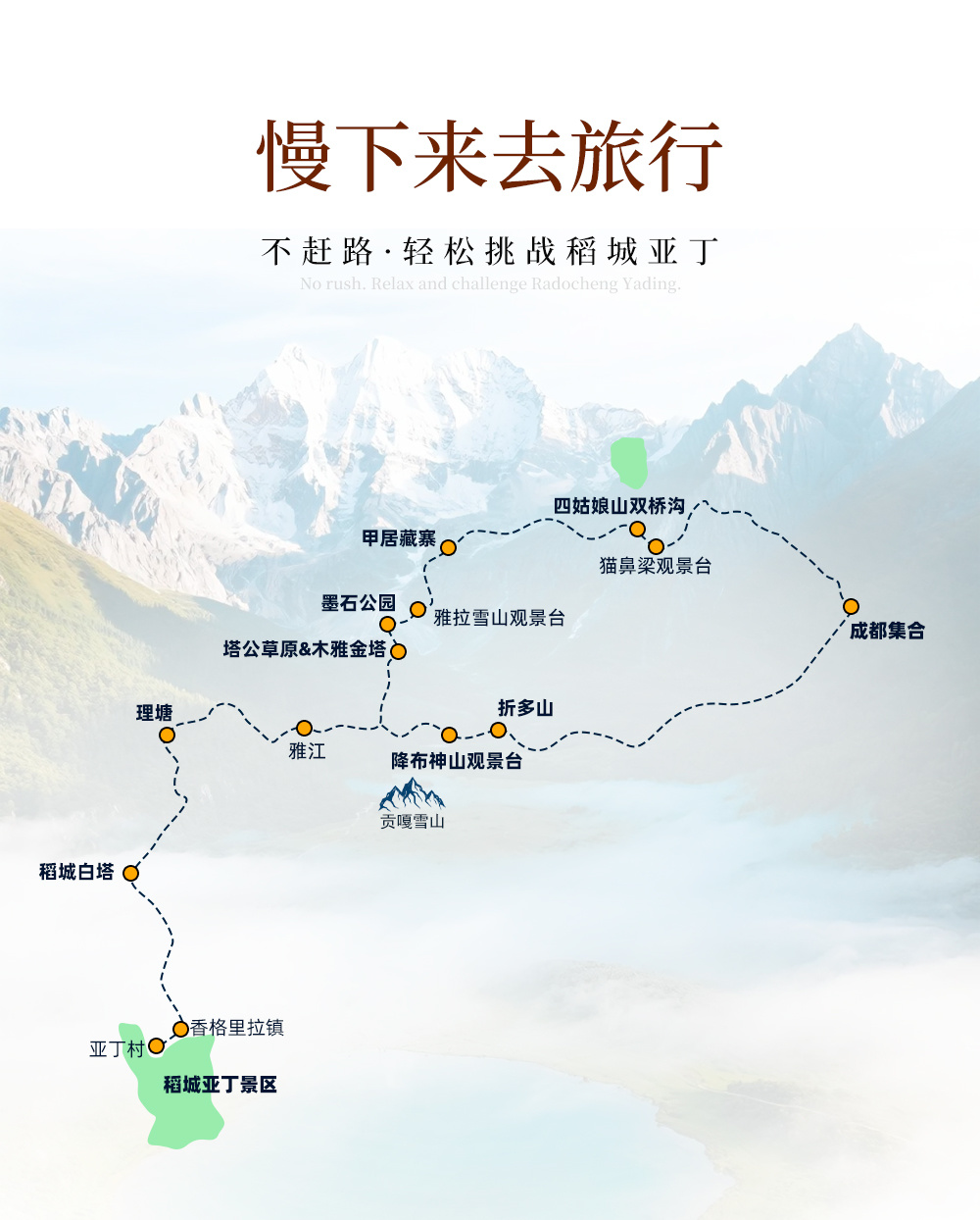 (2)如因堵车、交通管制等原因,今日15:00之前未能赶到四姑娘山,我们将放弃四姑娘山双桥沟的游览,敬请理解;