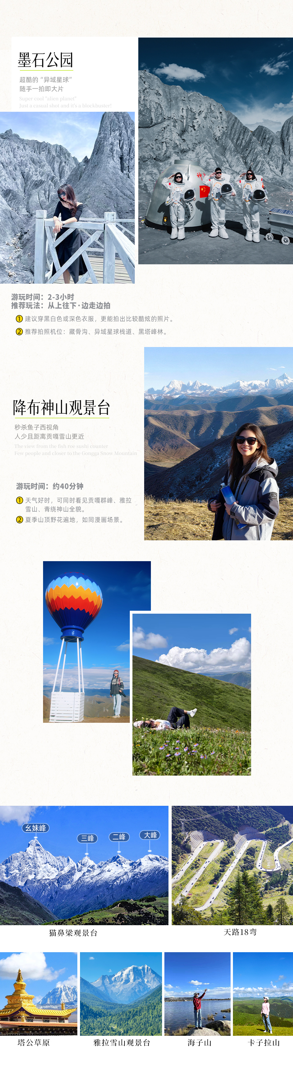 特色介绍:猫鼻梁拍四姑娘山全景、四姑娘山双桥沟