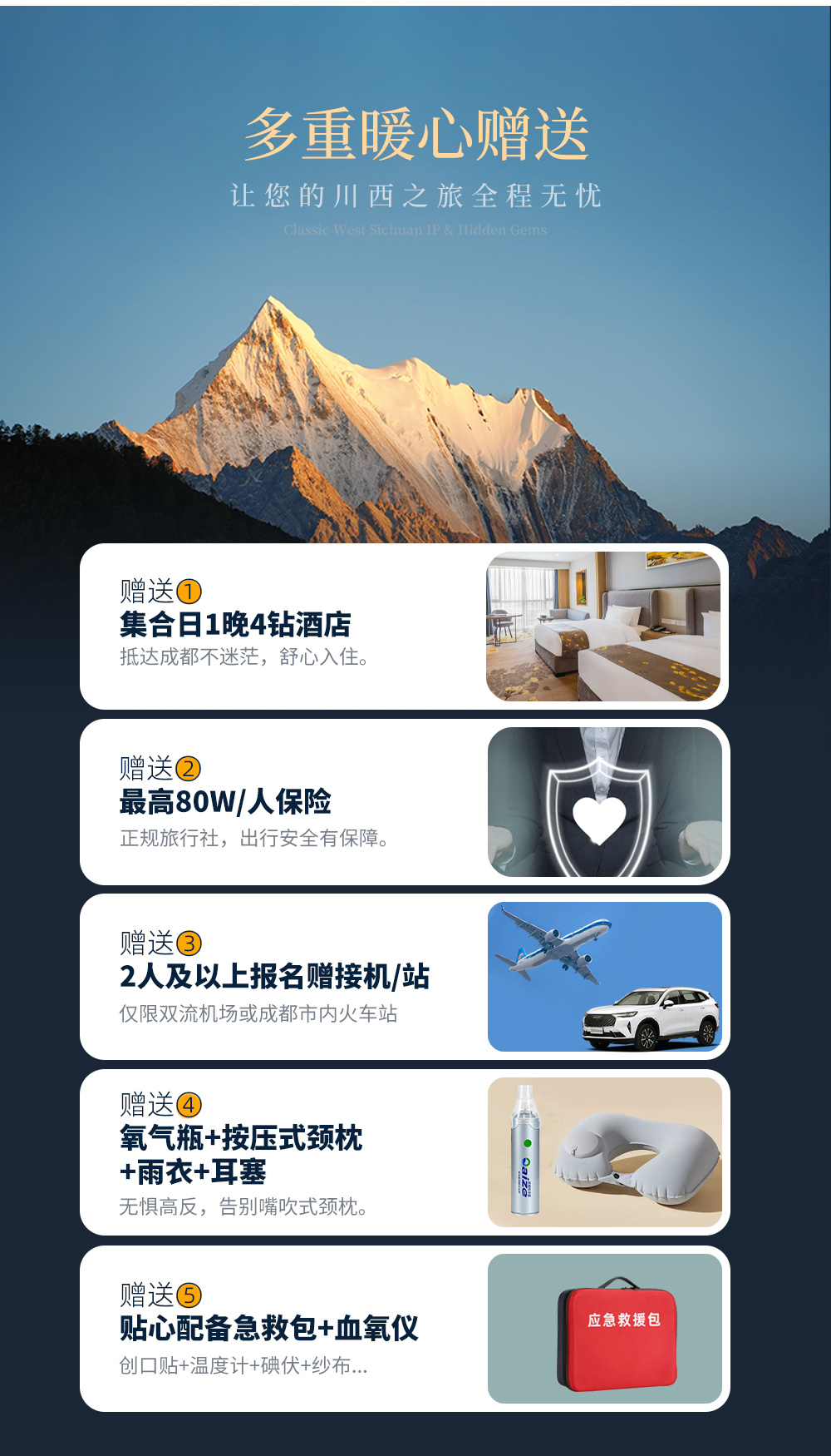 (3)特别声明:我社因没有医疗资质,随车只提供瓶装氧气,无任何药品,请提前备足适合自己的药品。