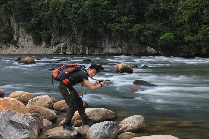 那都是背光惹的祸(其实是特意的),经过了两天的负重攀爬,最后潇洒走到终点,连水花都为我起舞了......