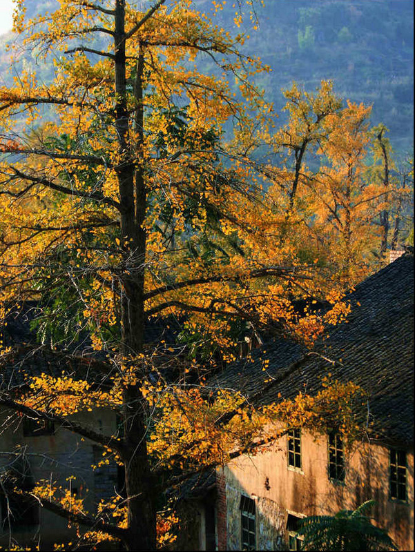 11:00到达秦家大院,可爬上楼顶或者山坡俯瞰整个村庄,可去田间摘罗汉果,可漫步这一片土砖土瓦的巷子发呆,细细品味这古韵;村口有几棵千年银杏,一阵风吹来秋叶随风飘落的诗意。。。也可以翻越一个山坡,山上松树林,枫叶林,银杏林遍布,在深秋时,这里由如是一幅油画~