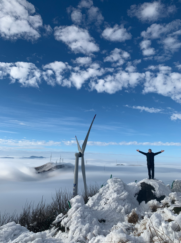 每逢冷空气来临时,山上就会展观的雾海雾凇奇观