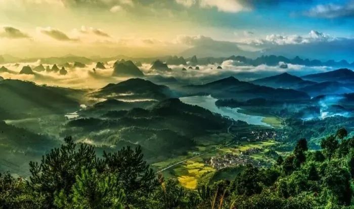 在那太阳升起的地方——都说黄姚是峰丛古镇梦境家园,但是想要真正体验到这种感觉,不是在黄姚古镇里面,而是在东潭岭上