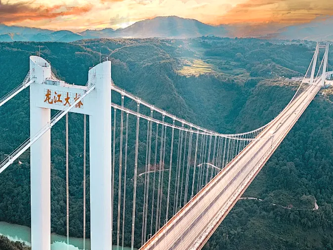 约14点30分左右,乘车前往潞江坝,途径【龙江特大桥】,峡谷跨径世界第一,海拔高度亚洲第一,约280米。在这里会适时安排时间给大家拍照。