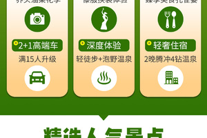 1、交通:行程内用车,路桥油费、司机吃住费;根据人数确定车型(每期满15人升级2+1陆地头等舱)