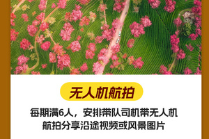 【航拍体验】:每期满6人,带队司机带无人机,航拍分享沿途视频或风景图片,带来不一样的旅行体验。
