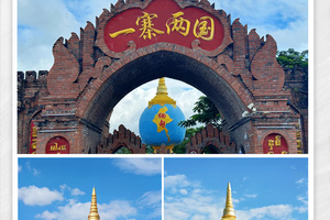 随后到达瑞丽【姐告国门】,它见证了中缅边贸繁荣发展的历程,这里还有商贸试点区、以及边境商城,如今的第四代国门,雄伟壮观、气势恢宏,来来往往的各国商人进出国门,好不热闹,是来到德宏必打卡点之一。