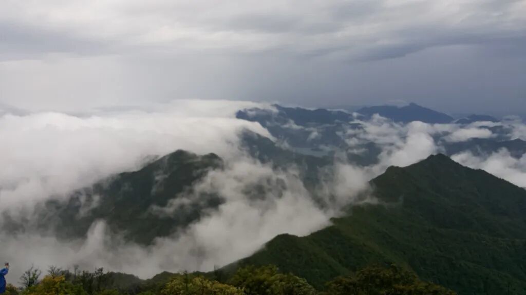 14:00 登顶桂峰山,稍作休整。各种玩耍、拍照,登高远望、吹着山顶的风尽情呐喊。