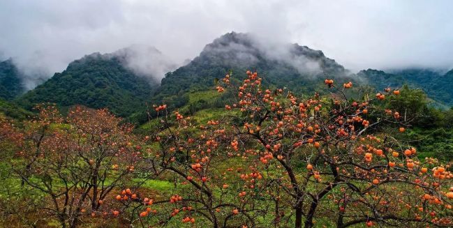 柿子红遍山脚的盛景