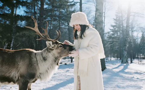 延吉-(50km,约1小时)图们中朝边境口岸-国门一脚踏两国-(180km,约3小时)长白山雪岭-森林雪山轻徒步-圣诞驯鹿接触-(65km,约1.5小时)雪地温泉