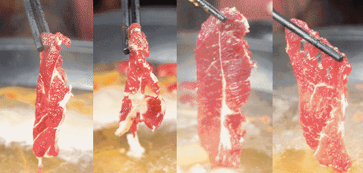 鲜嫩的牛肉在汤锅中摇滚,肉香四溢