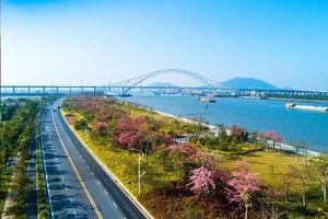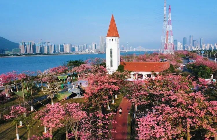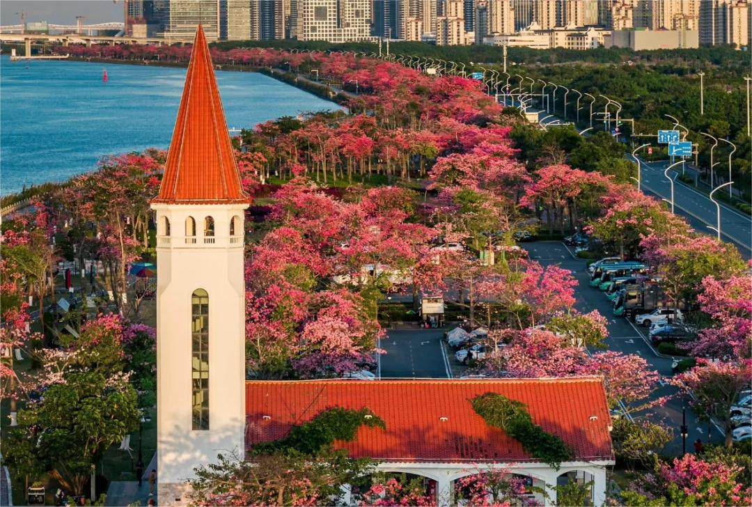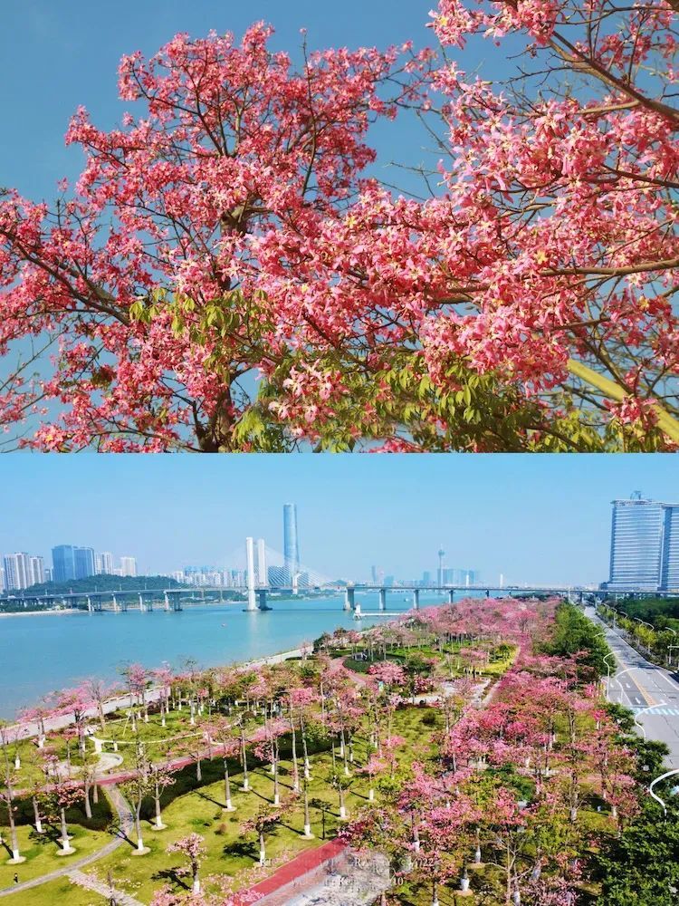 与澳门一海之隔拥有美丽的花海景观,根据不同花期,种植有樱木棉、凤凰木和木棉等。