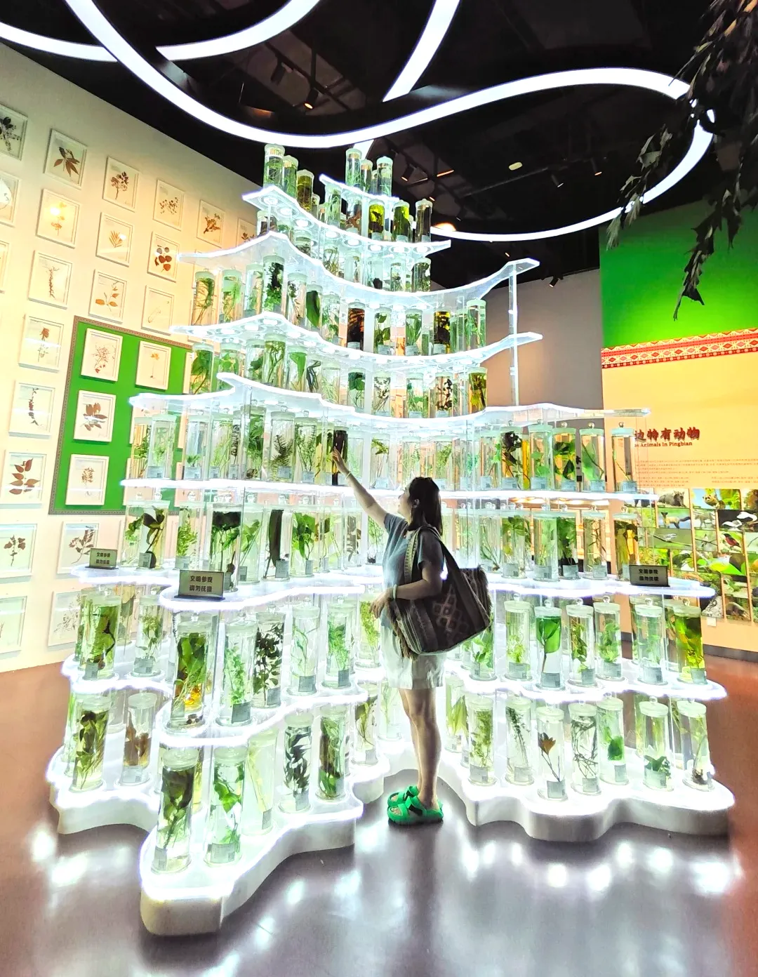 随后开车前往【屏边苗族自治县】,先抵达【滴水层瀑布】,到达观景台停车点后沿小路向下,穿过雨林、竹海到达瀑布,瀑布从头顶倾泻而下,巨大的水汽带来原始的压迫感,震撼人心。结束后,我们返程到【滴水苗城】,独特且统一的苗式建筑,让人一进入牛角寨门后就从视觉上体验到当地的苗族文化,这里山水相依,四季常青,水坝形成瀑布景观,是拍照打卡的绝佳地点。随后来到【网红医药博物馆】,博物馆位于滴水苗城高处,是苗族传统宫殿式风格,形成“层叠错落、飞檐翘角”的视觉效果,里面的活体或标本药材,如半人大的灵芝、开花的三七、切块的龙血树等,设计独特,令人印象深刻,可以了解到蚩尤带领九黎的故事及九黎迁入云南繁衍生息的历史。晚上入住屏边酒店休息。