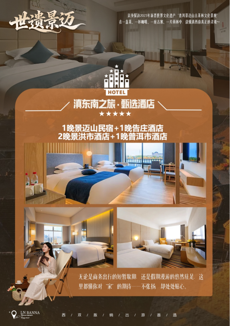 精选市区网评 4 钻酒店 / 景迈山民宿 / 告庄客栈酒店第 一 /二 晚 景 洪 市 区 :
