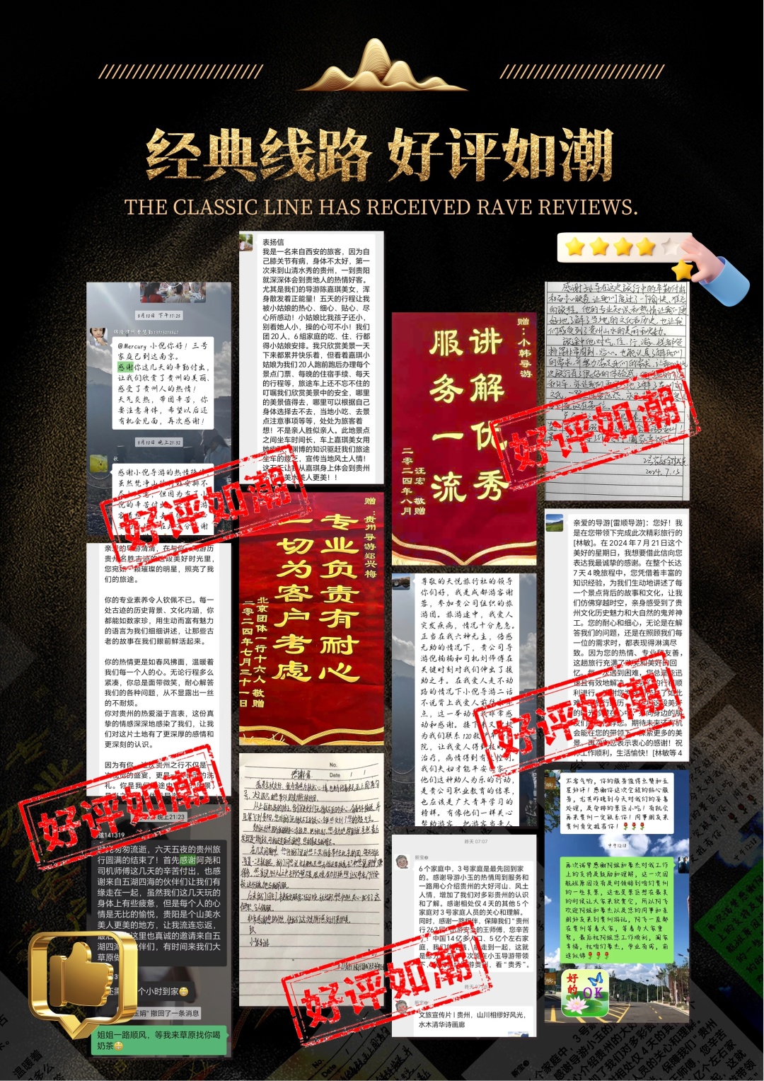备注:本产品执行真正纯玩,违约最高赔付2000元/人,贵州省大部分景区、酒店、餐厅都有其商业服务配套,甚至还会有讲解员为游客推荐解说,这并非我社安排的购物店范畴,请根据自身所需谨慎选购,此类投诉恕我社无法受理,敬请留意。