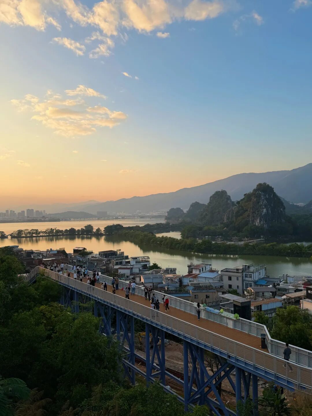 可以同时拍到山、湖、城、林,