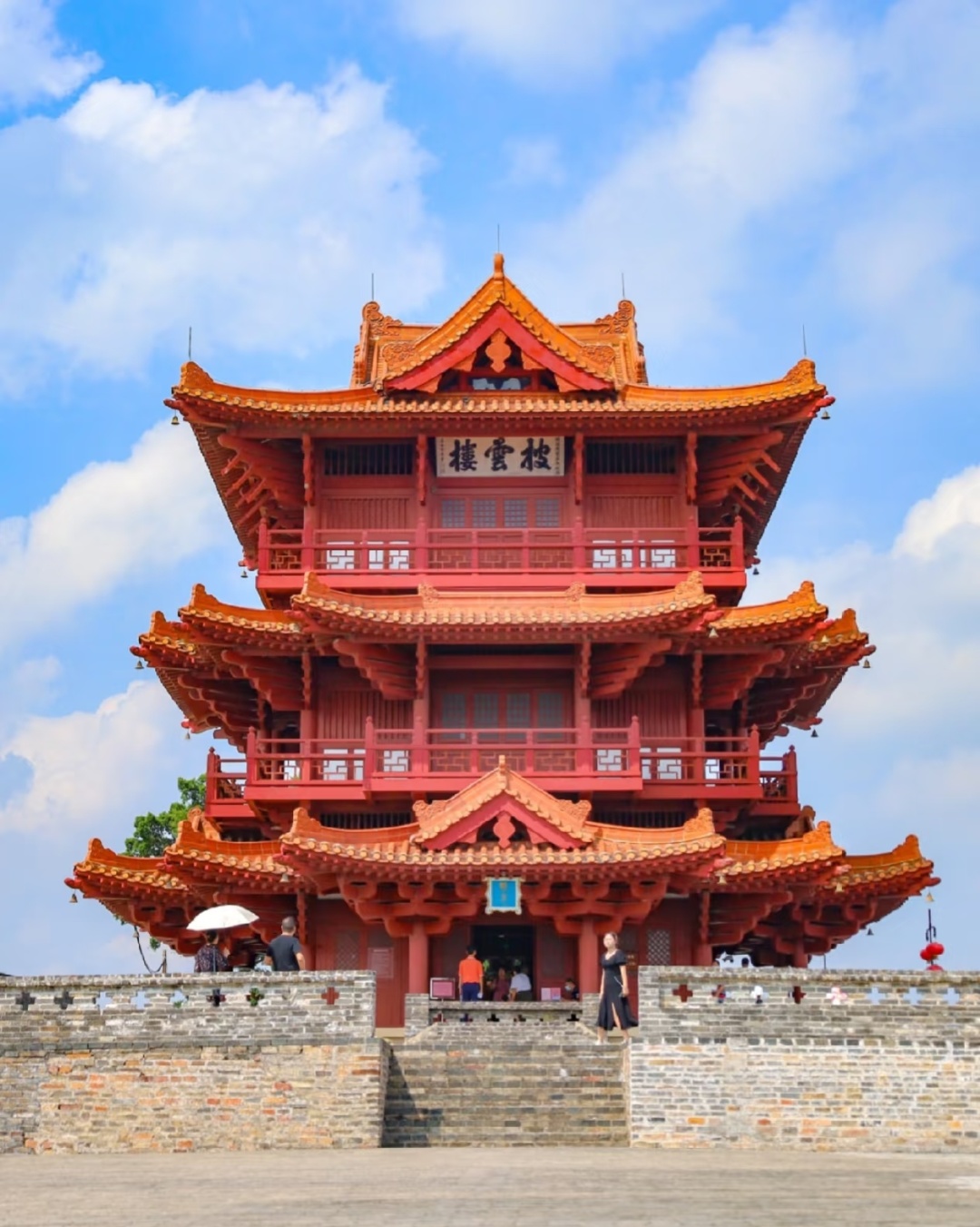 感受古代建筑城墙,披云楼是1989年重建的,楼高19.3米,其外形是仿照江西的滕王阁、湖北黄鹤楼和山西飞云楼而设计的,占地面积为300平方米。这里绝对是一个很好的打卡点哦!
