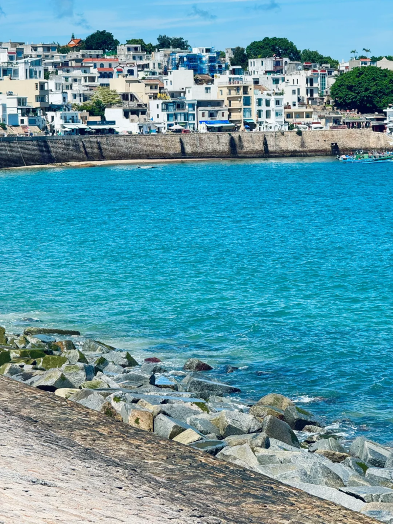 15:30 到达南门湾,电影《左耳》拍摄地,一排排彩色的房子,旁边就是沙滩和大海。在【铜陵老街】里穿梭,享受美食,还可以去山顶的文公祠拜拜,据说很灵验的噢,也可以去自费去风动石景区;