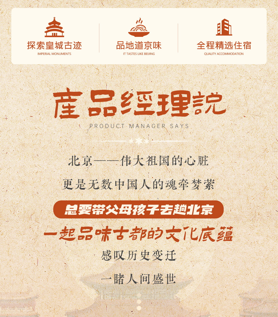 2、住宿:全程4晚北京当地高档型酒店住宿
